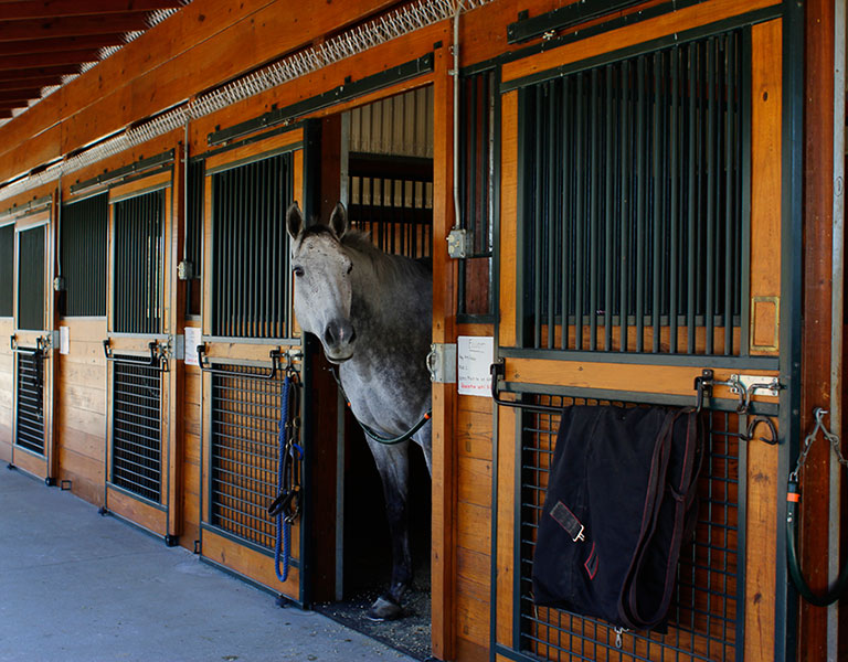 - Floors designed for maximum cleanliness – Our barns and stalls have concrete floors with rubber mats that are designed for easy cleanup and an odor-free environment.
